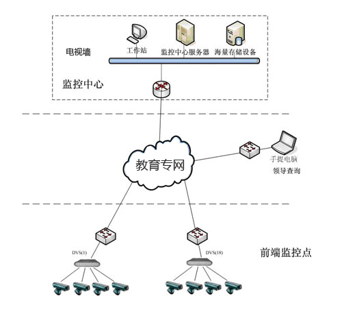 監(jiān)控區(qū)域多,要求系統(tǒng)支持多種布線方式,最好可利用現(xiàn)成骨干線路中的部分預(yù)留線路,并合理分散到每個監(jiān)控區(qū)域;或利用校園網(wǎng)絡(luò)規(guī)劃相對獨立的邏輯專網(wǎng),在區(qū)域內(nèi)進(jìn)行網(wǎng)絡(luò)節(jié)點擴散,方便施工及維護(hù);監(jiān)控畫面清晰;監(jiān)控環(huán)境各異;系統(tǒng)聯(lián)動報警;防止校園暴力;加強事后取證;多系統(tǒng)整合;應(yīng)用范圍擴展;實施運維簡易。