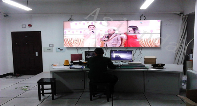 46寸超窄邊拼接,2*3機(jī)柜式安裝。