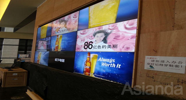 佛山該公司前臺(tái)大廳采用的46寸液晶拼接屏,組成的3x3大屏拼接墻,拼縫僅5.3mm。根據(jù)客戶的裝飾要求,我公司采用壁掛式鋁合金支架支撐大屏拼接墻來(lái)達(dá)到客戶的審美觀!為了確保液晶拼接屏在播放過(guò)程中保持清晰流暢,該展示中心采取了我公司的建議,配備了一臺(tái)16VGA分配器。同時(shí)該3x3大屏拼接墻還配備了我公司免費(fèi)提供的多媒體互動(dòng)軟件,以及客戶自備的2臺(tái)電腦。