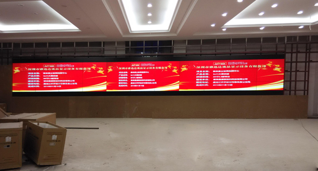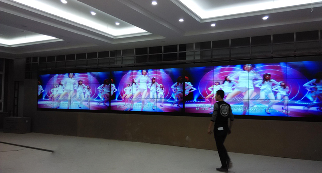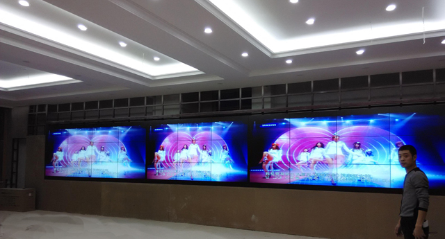 該指揮中的液晶拼接墻是是3*11的46寸拼接單元組合而成,其拼縫為5.3mm。