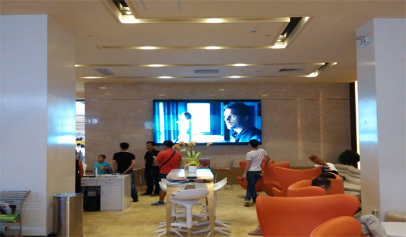 該液晶拼接墻的是采用的46寸的液晶拼接屏,拼縫是5.3mm.該高清拼接墻方案應(yīng)用在高檔電影院VIP室,用于商業(yè)廣告及公告影片信息等功能。