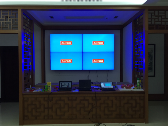 廣西某公司的監(jiān)控室采用了雅迅達(dá)2×2拼接的55寸液晶拼接屏,并搭配了多屏處理器高清顯示設(shè)備。矩陣使用網(wǎng)絡(luò)控制,大屏也是網(wǎng)絡(luò)控制,可以實(shí)現(xiàn)多畫面同時(shí)顯示,并且可以實(shí)現(xiàn)自由開窗,監(jiān)視窗的窗口大小可以自由調(diào)控、位置可以隨時(shí)挪動(dòng),可以隨時(shí)切換信號(hào)源。是一種非常靈活的顯示方案,對(duì)于多監(jiān)控、多功能的公司顯示系統(tǒng),這個(gè)使用非常合理。