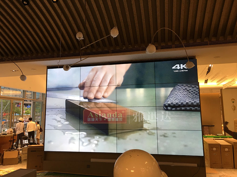深圳聚星國(guó)際影城VIP室3x3拼接 深圳聚星國(guó)際影城46寸液晶拼接墻3x3商用顯示系統(tǒng)案例的是采用雅迅達(dá)46寸液晶拼接...