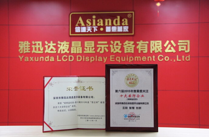 作為專業(yè)液晶顯示設(shè)備研發(fā)生產(chǎn)企業(yè),雅迅達(dá)深耕液晶顯示行業(yè)15年,在液晶顯示領(lǐng)域取得卓越成果,是一家擁有27項(xiàng)專利的國(guó)家級(jí)高新技術(shù)企業(yè)。公司通過(guò)了質(zhì)量管理體系、環(huán)境管理體系等國(guó)家認(rèn)證,產(chǎn)品廣泛應(yīng)用于各業(yè),受到客戶的一致好評(píng),連續(xù)兩年被授予“廣東省守合同重信用企業(yè)”稱號(hào),并被評(píng)為“全國(guó)液晶顯示設(shè)備行業(yè)質(zhì)量領(lǐng)先品牌”。