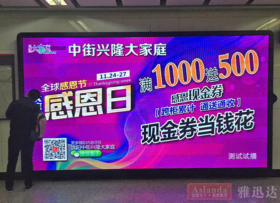 此次坐落在沈陽地鐵的液晶廣告大屏是在成都智元匯文化傳媒股份有限公司的指導(dǎo)下由深圳市雅迅達(dá)液晶顯示設(shè)備有限公司全程調(diào)試安裝的,這是繼上一次智元匯和雅迅達(dá)合作完成杭州地鐵項(xiàng)目之后,再一次將多媒體電子大屏搬上地鐵顯示信息化平臺。這其中就包括沈陽地鐵1號線、2號線奧體中心、東中街站、工業(yè)展覽館、火車站、青年大街、三臺子站、沈陽北站、鐵西廣場、于洪廣場站等在內(nèi)的地鐵廣告大屏項(xiàng)目。