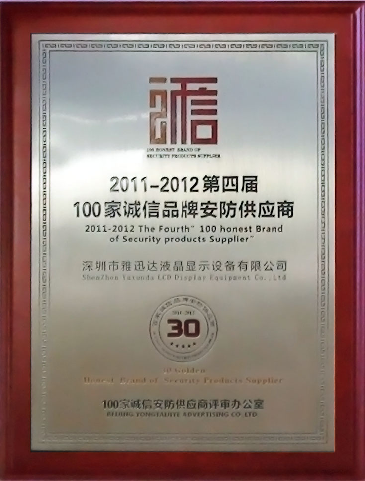 深圳雅迅達榮獲“30家金牌誠信安防供應商”稱號