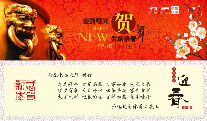 正值中國的傳統(tǒng)節(jié)日“春節(jié)”來臨,在此向各位新老客戶和廣大朋友們拜個(gè)早年!預(yù)祝大家新春愉快!財(cái)源廣進(jìn)!事業(yè)紅火!