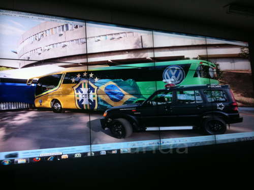 此套液晶拼接系統(tǒng)包括60塊超窄邊46英寸液晶屏幕,窄邊拼縫為6.7mm。分別組合成3*4,3*6,3*10拼接幕墻。每套顯示設(shè)備均采用超窄邊液晶技術(shù),打造出高亮度、高分辨率、高清晰度、高智能化控制的大屏幕顯示系統(tǒng)。該系統(tǒng)是集集中監(jiān)控、指揮調(diào)度、信息交互、應(yīng)急處理等綜合性的安全防范平臺(tái)。可滿足了2014年巴西世界杯舉行的日常安全要求。