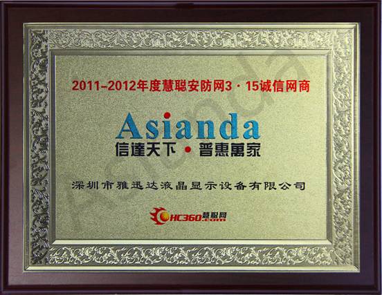深圳市雅迅達(dá)液晶顯示設(shè)備有限公司,致力于安防監(jiān)控產(chǎn)品的研發(fā)、生產(chǎn)和銷售為一體的實(shí)力型企業(yè)。經(jīng)過不斷的改進(jìn)、創(chuàng)新、積累,研發(fā)成果已經(jīng)覆蓋了視頻采集、監(jiān)控、傳輸、顯示等多個(gè)領(lǐng)域,并形成了具有Asianda(雅迅達(dá))自主知識(shí)產(chǎn)權(quán)的多類產(chǎn)品。Asianda(雅迅達(dá))液晶拼接系統(tǒng)已廣泛應(yīng)用于金融、司法、政府、軍隊(duì)、交通、企業(yè)、教育、醫(yī)療等行業(yè)。此次榮獲“2011-2012年度慧聰安防網(wǎng)315誠信網(wǎng)商”,不僅是對(duì)Asianda(雅迅達(dá))在安防領(lǐng)域的肯定,更是對(duì)Asianda(雅迅達(dá))在整個(gè)終端顯示領(lǐng)域的認(rèn)可。也離不開廣大用戶、業(yè)界同仁及社會(huì)各界人士對(duì)雅迅達(dá)的大力支持。