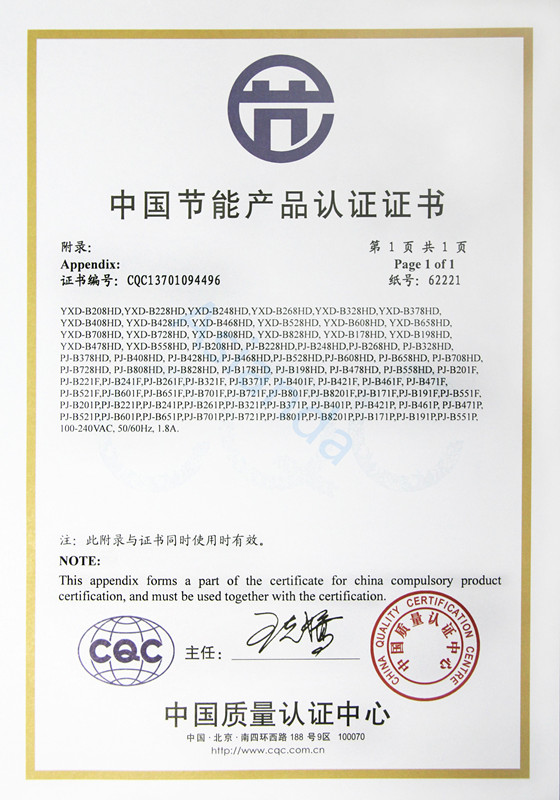 雅迅達液晶拼接單元縱多節(jié)能產品2013年正式通過“中國節(jié)能產品認證”。證書編號:CQC13701094496,證書有效時間:2013年05月31日-2016年05月31日。