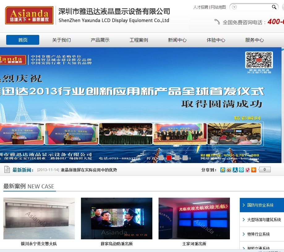 為保持客戶對(duì)我公司網(wǎng)站的熟識(shí)度,新網(wǎng)站在顯示風(fēng)格上未作重大調(diào)整。藍(lán)色為主基調(diào)的新網(wǎng)站,簡(jiǎn)潔大方,又與我公司主營(yíng)液晶顯示器、拼接大屏等藍(lán)色熒光相得益彰。原有的在線客服版塊依然保留,履行直接與客戶對(duì)接服務(wù)的職責(zé)。
