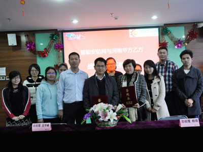 雅迅達營銷總監(jiān)黃春龍(左三)與慧聰網(wǎng)總經(jīng)理龍宇峰(左四)、《甲方乙方》總經(jīng)理楊琪(右三)合影