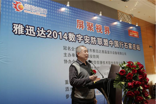 本次活動大概分為四個環(huán)節(jié):冠名企業(yè)雅迅達(dá)新技術(shù)發(fā)布,融合共贏-安防企業(yè)未來發(fā)展之路高峰論壇,協(xié)辦企業(yè)佳信捷、國祥安、優(yōu)特普產(chǎn)品技術(shù)講解,交流晚宴。20日下午2點半,中國行石家莊活動正式開啟,中國傳媒大學(xué)楊磊教授作為嘉賓致辭拉開了會議的序幕。楊教授說道:“今天,我們安防市場的競爭已經(jīng)日趨激烈,更多企業(yè)面臨著不同的發(fā)展疑問,如何在競爭中脫穎而出?而今數(shù)字安防聯(lián)盟的資源整合,服務(wù)融合,為企業(yè)間搭建溝通橋梁,成為我們2014年必走之路?!?/span>
