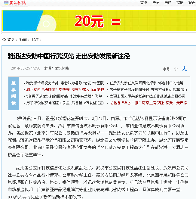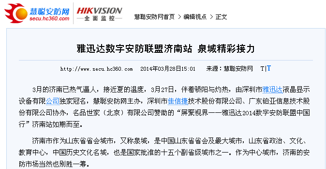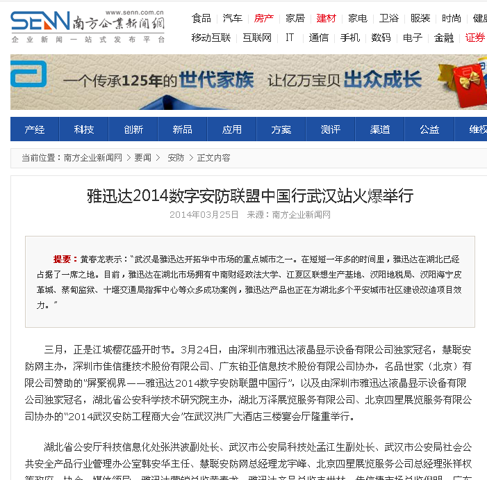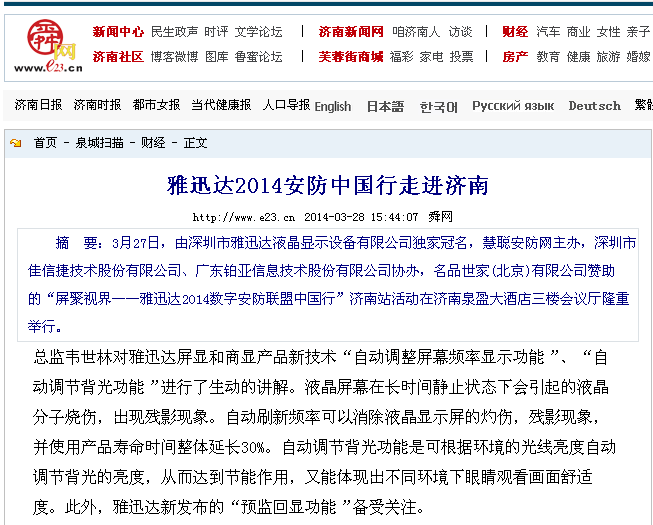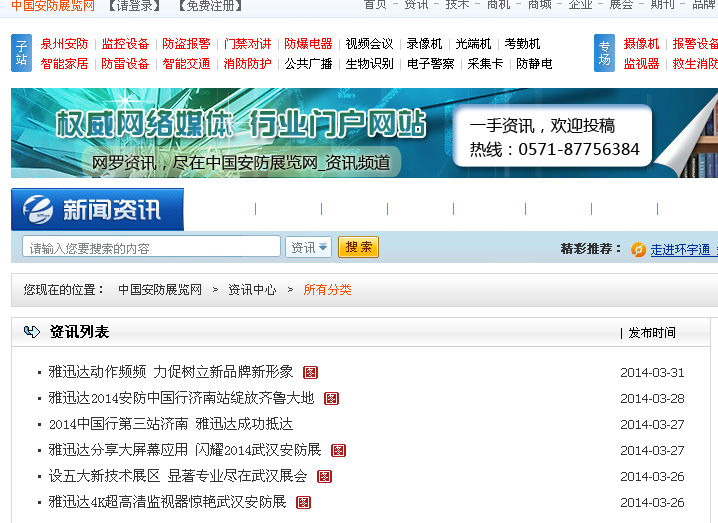 慧聰安防網(wǎng)、中國展覽網(wǎng)等安防重大行業(yè)網(wǎng)站,均對(duì)雅迅達(dá)本次活動(dòng)設(shè)立專題,全面詳細(xì)報(bào)道活動(dòng)詳情。