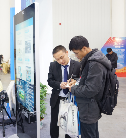 安防展中客戶詳細記錄雙面廣告機參數(shù)信息
