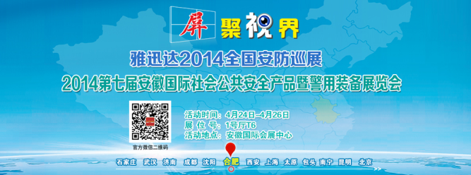 在即將到來的4月24日,安徽國(guó)際會(huì)展中心將上演為期三天的饕餮盛宴——2014第七屆安徽國(guó)際社會(huì)公共安全產(chǎn)品暨警用裝備展覽會(huì)(簡(jiǎn)稱安徽安防展)。深圳市雅迅達(dá)液晶顯示設(shè)備有限公司,作為后端顯示領(lǐng)域優(yōu)秀企業(yè),將與安徽本地優(yōu)秀安防企業(yè)安徽創(chuàng)安電子科技發(fā)展有限公司,強(qiáng)強(qiáng)聯(lián)合,攜手亮相安徽安防展1號(hào)廳T6展臺(tái)。