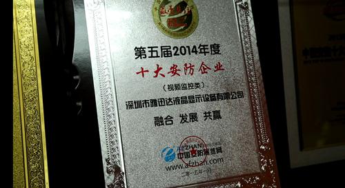 雅迅達榮獲“第五屆2014年度最受關注視頻監(jiān)控類十強”