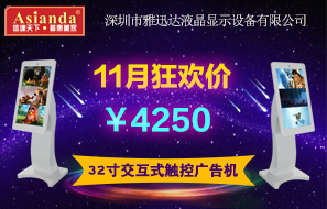 雅迅達(dá)年底巔峰讓利 32寸交互式觸控廣告機(jī)低價(jià)來襲 觸控需求的迅猛興起,我們已進(jìn)入觸控時(shí)代,不論是手機(jī)還是電視電腦,用手指操控成為人們的習(xí)慣。廣告機(jī)的發(fā)展也是如此,經(jīng)過了幾代的發(fā)展,觸控廣告機(jī)已經(jīng)成為了廣告機(jī)中的重要一...
