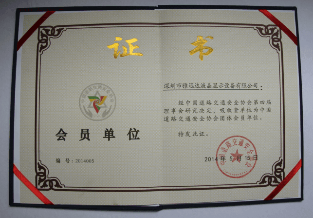 雅迅達加入中國道路交通安全協(xié)會   近日消息,深圳市雅迅達液晶顯示設備有限公司通過中國道路交通安全協(xié)會理事會審核,成為中國道路交通安全協(xié)會團體會員單位,享受協(xié)會的選舉權(quán)、被選舉權(quán)和表決權(quán),參加協(xié)會會...