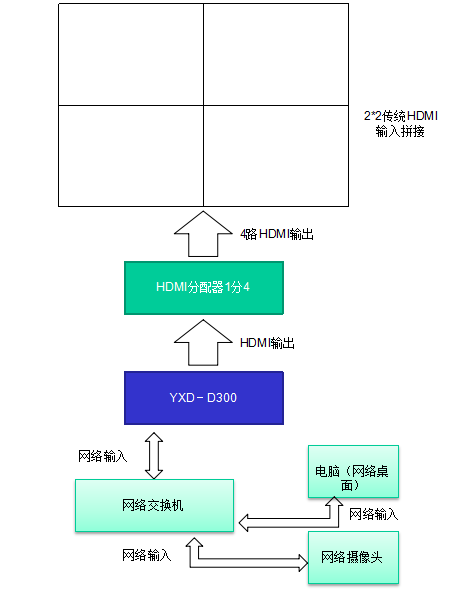 YXD-D300單畫(huà)面輸出時(shí)可以顯示一個(gè)大的畫(huà)面,4分割時(shí)可以每塊屏顯示一個(gè)完整畫(huà)面,16分割時(shí)每塊屏可以顯示4畫(huà)面,可以接入多路PC或者IPC信號(hào)??梢允〉艟仃嚒⒔獯a器、分割器和圖像處理器等。