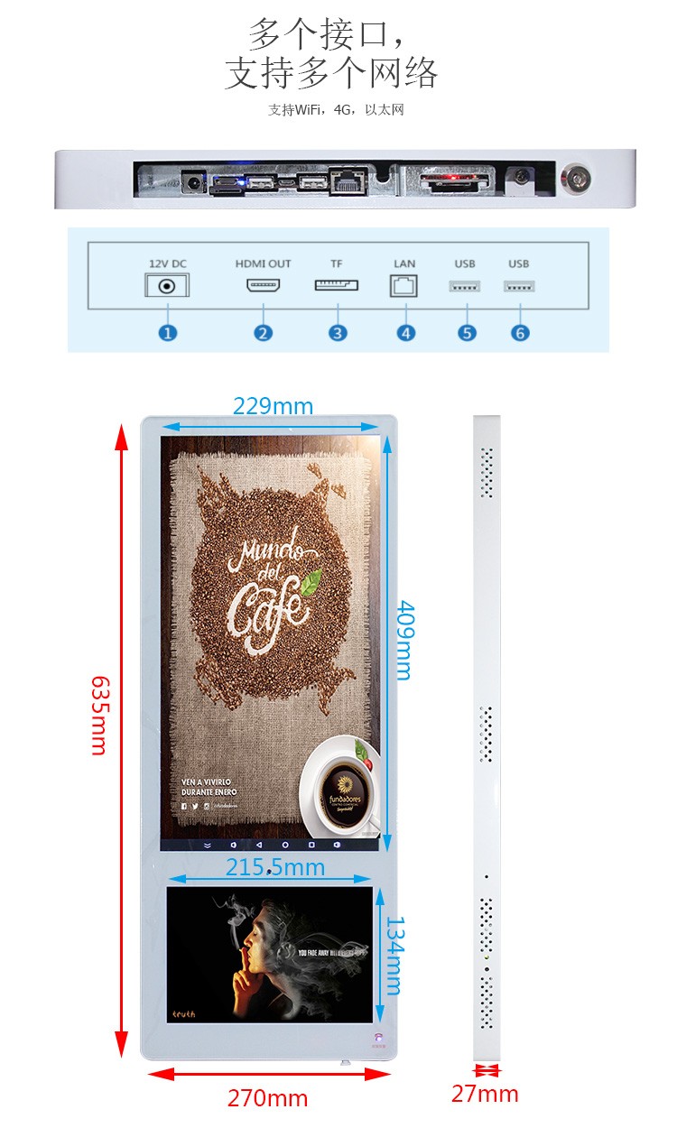 HDMI 1.4標(biāo)準(zhǔn)顯示接口,最高支持1080P輸出